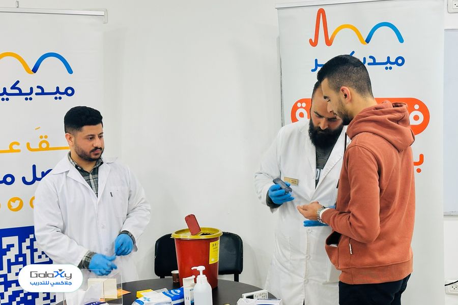 ورشة توعوية نفذها مركز جلاكسي للتدريب حول مرض السكري في جنين، بالتعاون مع مختبرات ميديكير، تضمنت تعريفًا بالمرض وفحصًا مجانيًا لسكر الدم.