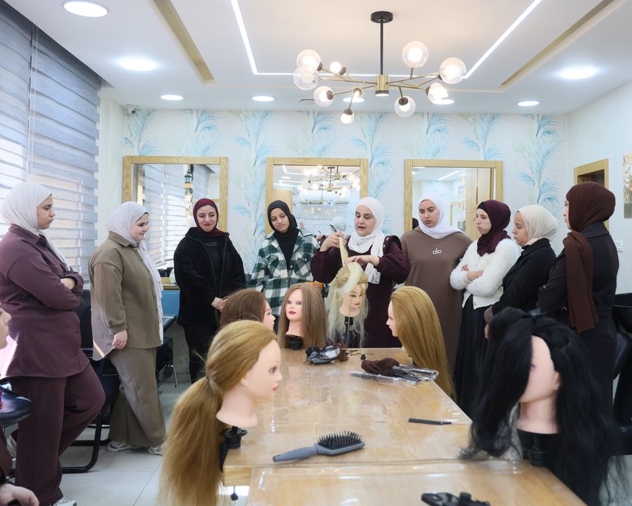 ورشة عمل متخصصة في فن الأظافر نظمها مركز جلاكسي للتدريب لطالبات تخصص التجميل والعناية بالبشرة في الخليل، بالتعاون مع شركة رجائي سنتر زوم.