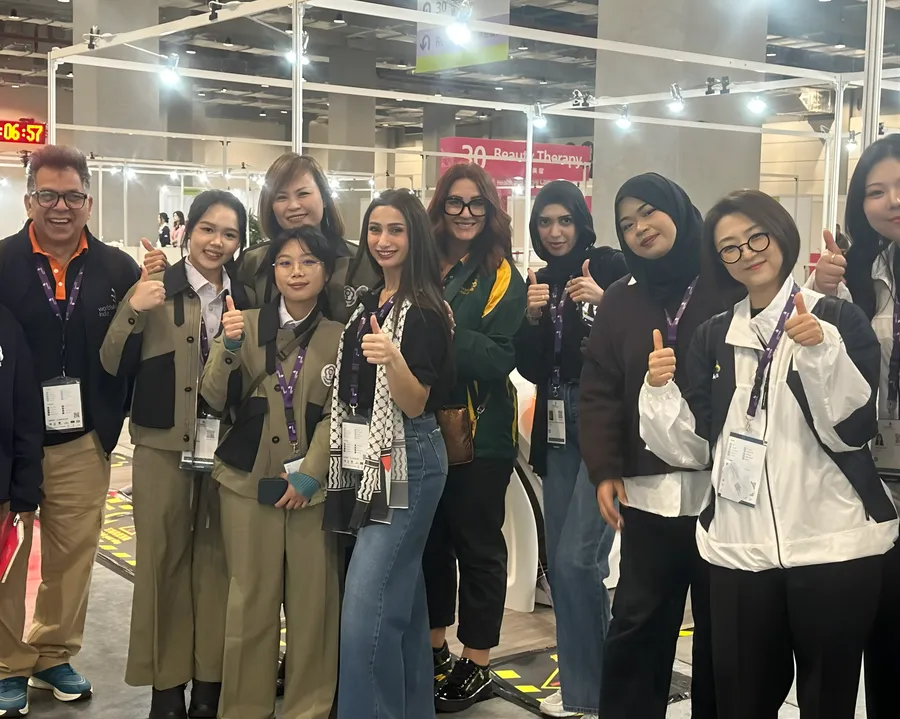 مدربة التجميل في مركز جلاكسي للتدريب ربا عودة وطالبتها وئام تمثلان فلسطين في المسابقة العالمية للمهارات – آسيا التي أُقيمت في تايوان.